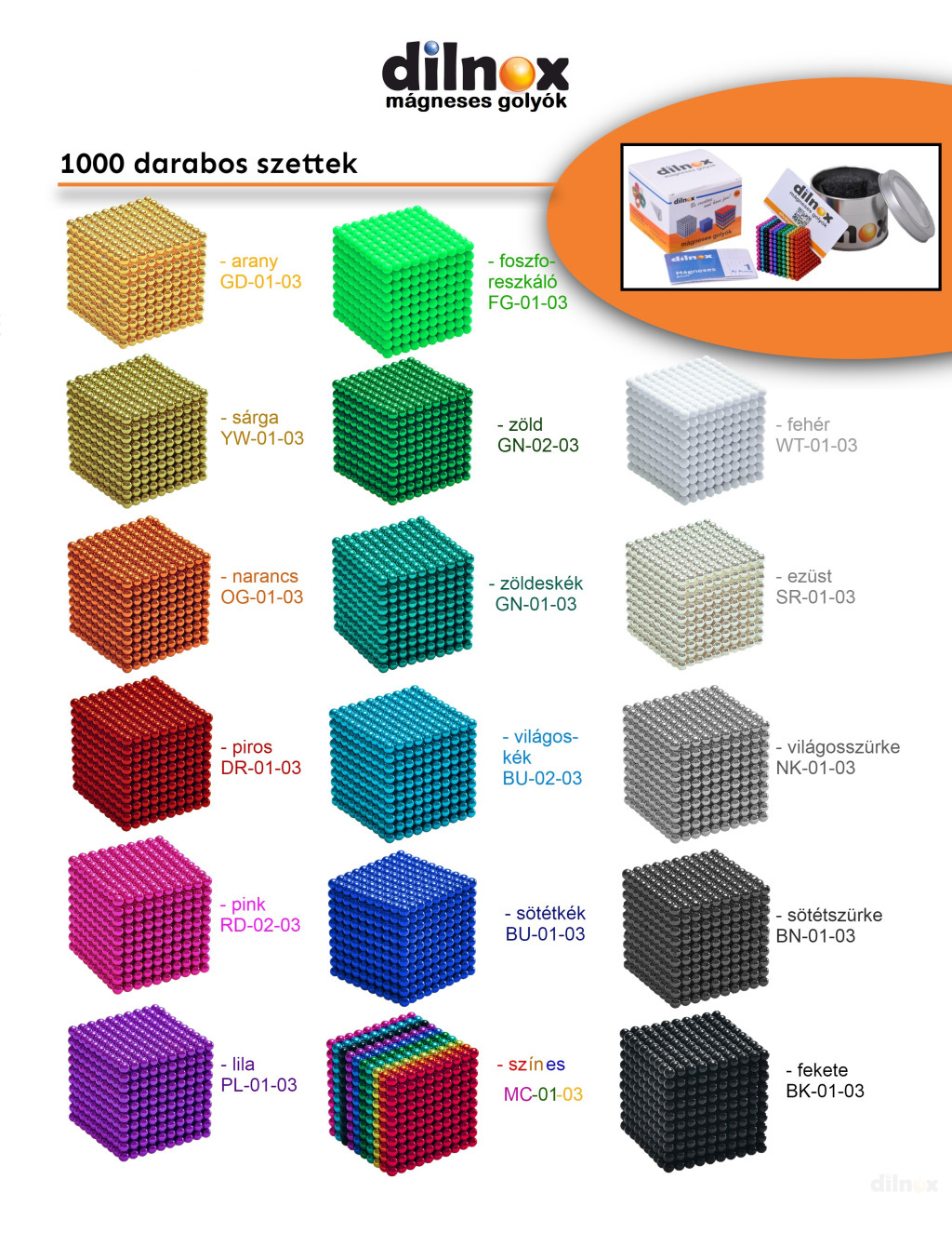 1000 darabos mágneses golyó szett, színes – specifikáció: