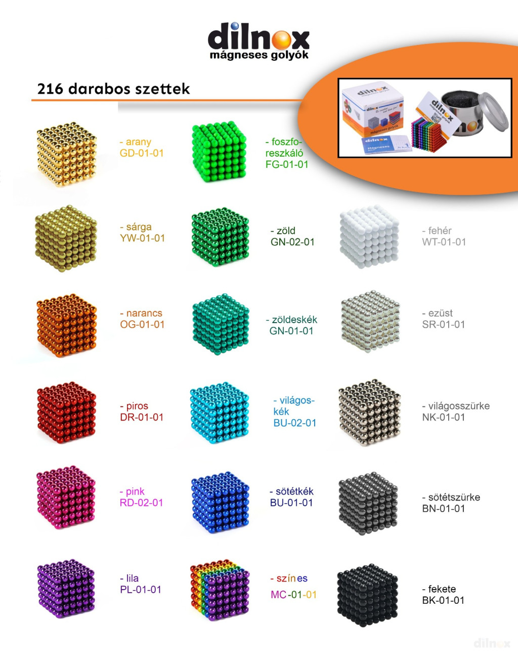 216 darabos mágneses golyó szett SÖTÉTSZÜRKE